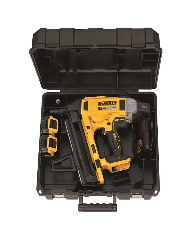• 18V XR Li-Ion nastřelovací pistole do betonu 18 V s technologií BEZUHLÍKOVÉHO motoru a bateriemi typu XR s kapacitou 5,0 Ah umožňuje nastřelovat hřebíky do betonu a železa.