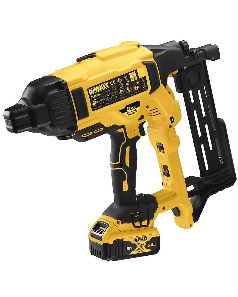 Aku sponkovačka na ploty 18V 2x5,0Ah DeWALT DCFS950P2 s možností nastřelování spon délek 40, 45 a 50 mm.