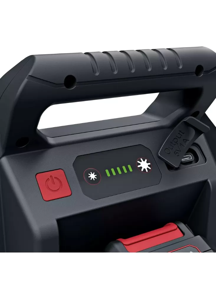 • Akumulátorový reflektor s výkonem 5000 lumenů s 5 úrovněmi jasu plus režimem ECO. Funkce paměti světlo spustí v poslední nastavené úrovni