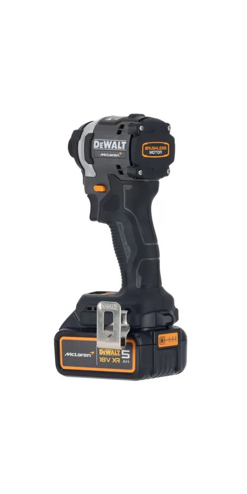 Aku příklepová vrtačka 18V/2x5,0Ah limitovaná edice McLaren DeWALT DCD85MP2T Limitovaná edice Dewalt v designovém provedení McLaren Dlouhá doba chodu na jedno nabití baterie a delší životnost díky inovativní technologii bezkomutátorového...