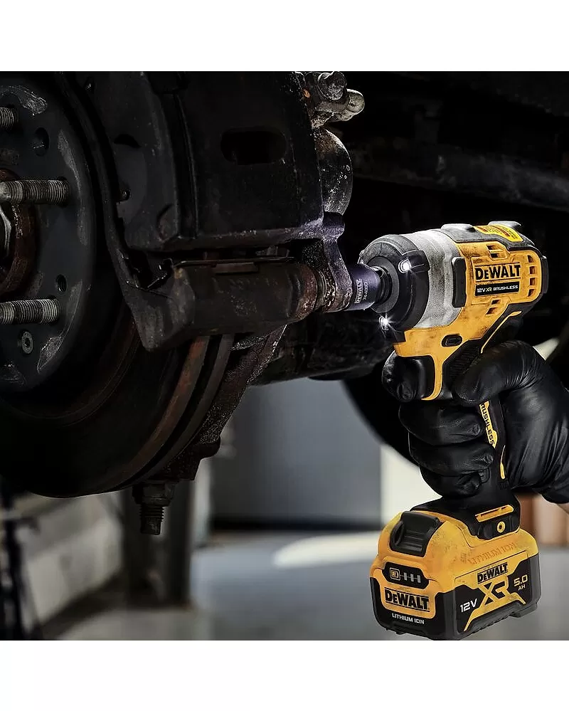 Aku rázový utahovák 12V 5,0Ah DeWALT DCF901P1 s bezuhlíkovým motorem, kompaktním designem a trhacím momentem až 500Nm.