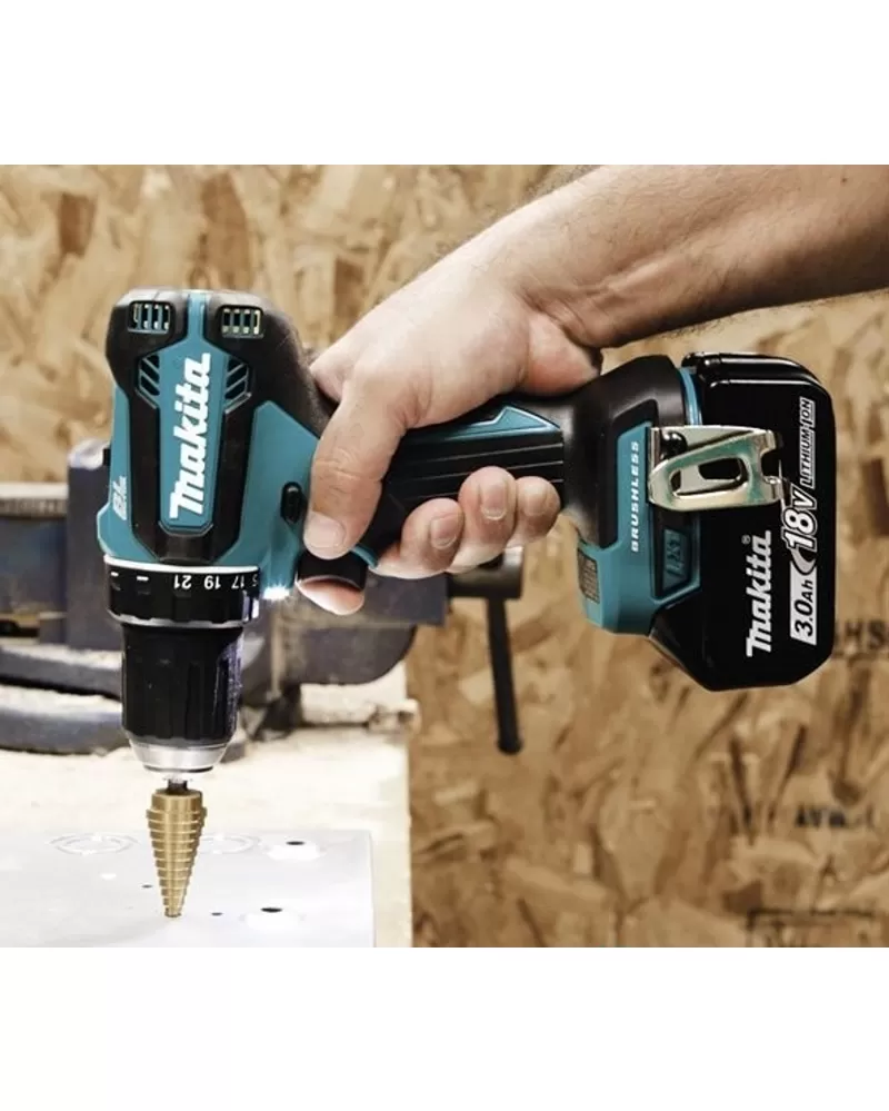 • Vrtací šroubovák s bezuhlíkovým motorem umožňujícím delší práci na jedno nabití akumulátoru