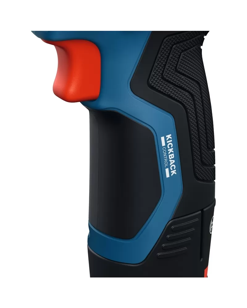 Akumulátorové nářadí GSR 12V-32 Professional nabízí nejlepší kontrolu nad nářadím díky technologii Advanced KickBack Control. Tato technologie minimalizuje riziko zranění, pokud se vrták náhle zasekne nebo se nářadí pomalu otáčí kolem své osy vrtání a přídržná síla se pomalu zvyšuje. S délkou hlavy 142 mm a výškou 160 mm je nářadí mimořádně kompaktní a usnadňuje vrtání nebo šroubování i ve stísněných nebo těžko přístupných prostorech. Opakovaná práce během dne je navíc díky tomuto lehkému vrtacímu šroubováku, který váží pouhých 0,7 kg, méně vyčerpávající.