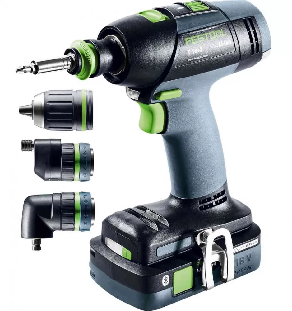 Pro naprostou flexibilitu při vrtání a šroubování: plně elektronické nastavení krouticího momentu, rychlovýměnný systém CENTROTEC, úhlový a excentrický nástavec a hloubkový doraz zvládnou každé vrtání a šroubování. Díky kombinaci akumulátoru Li-HighPower a bezuhlíkového a tedy bezúdržbového motoru EC-TEC je akumulátorový vrtací šroubovák T 18+3 lehký a vyznačuje se dlouhou životností a výdrží. Pro bezstarostnou každodenní práci je akumulátorový šroubovák a akumulátor kompletně zabezpečený službami Festool SERVICE. Je dostupný s jedinečnou konstrukcí T nebo – podle individuální preference – také jako C 18 s jedinečnou konstrukcí C.