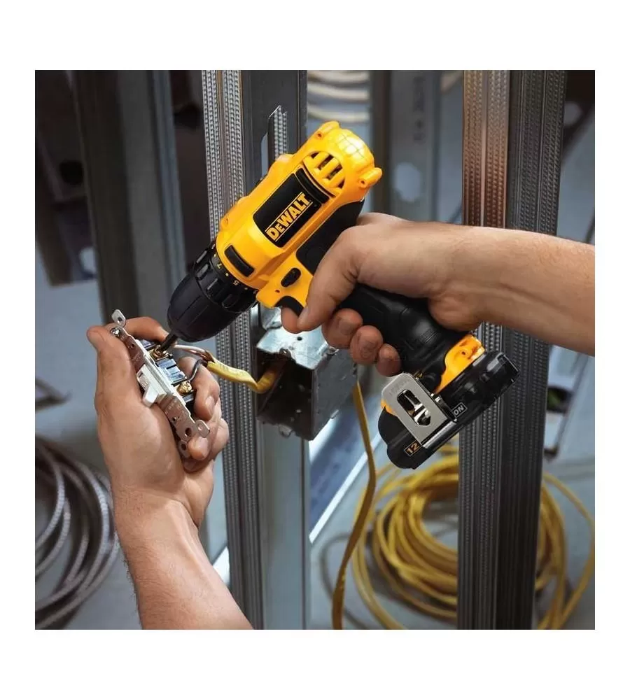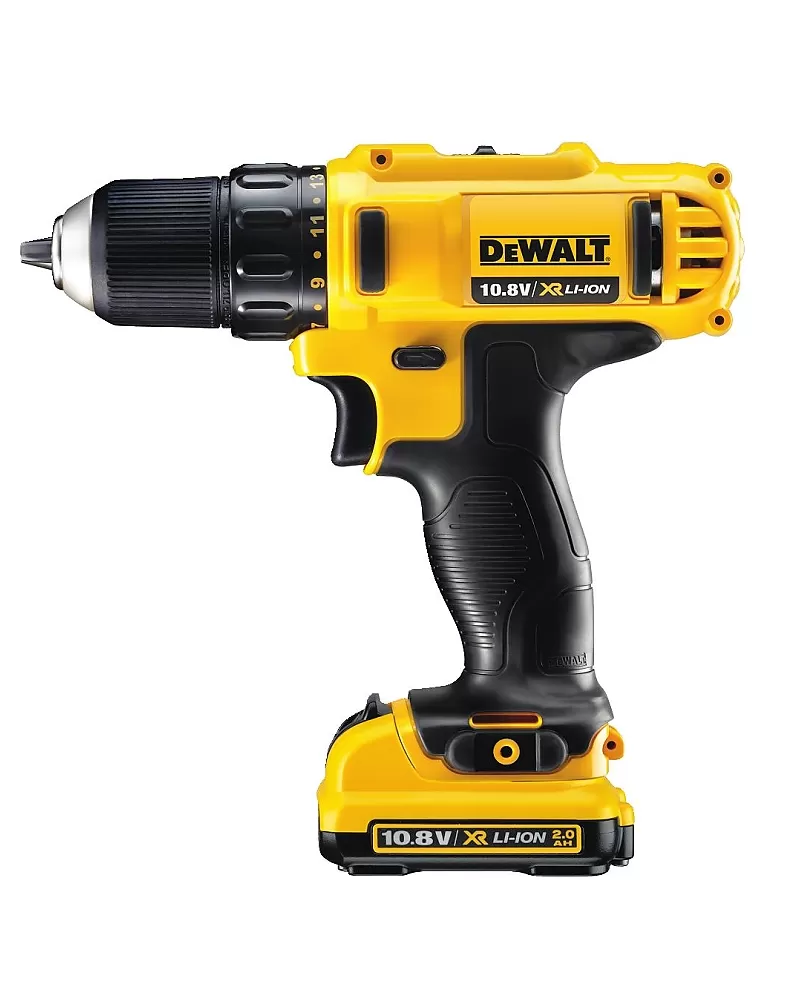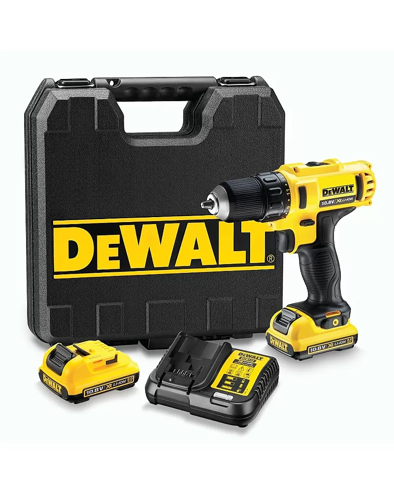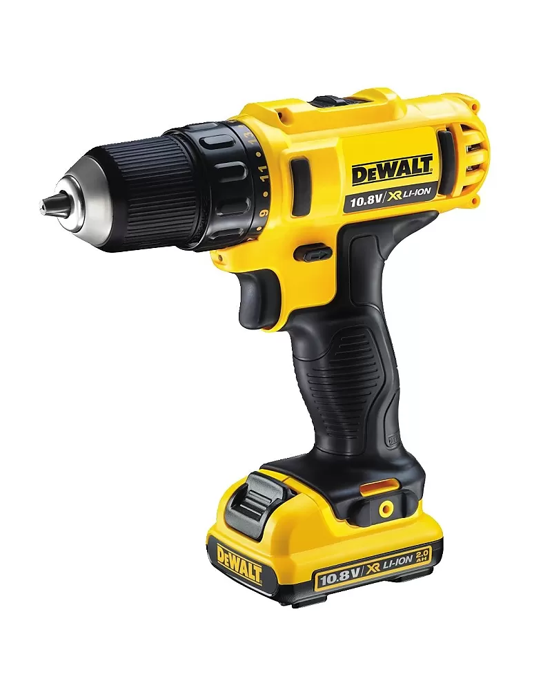 Výkonná aku vrtačka a šroubovák 12V 2x2,0 Ah DeWALT DCD710D2 umožňující díky 15 polohám nastavení krouticího momentu přesné šroubování do všech materiálů i pohodlné vrtání.