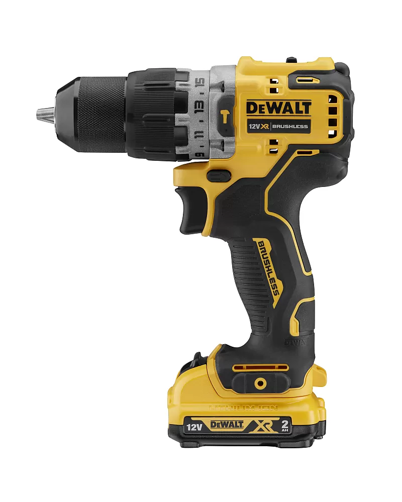 Aku příklepová vrtačka 12V 2x2,0Ah DeWALT DCD706D2 s dvourychlostní celokovovou převodovkou a možností přesného nastavení krouticího momentu.
