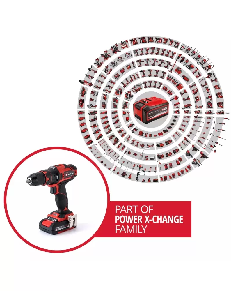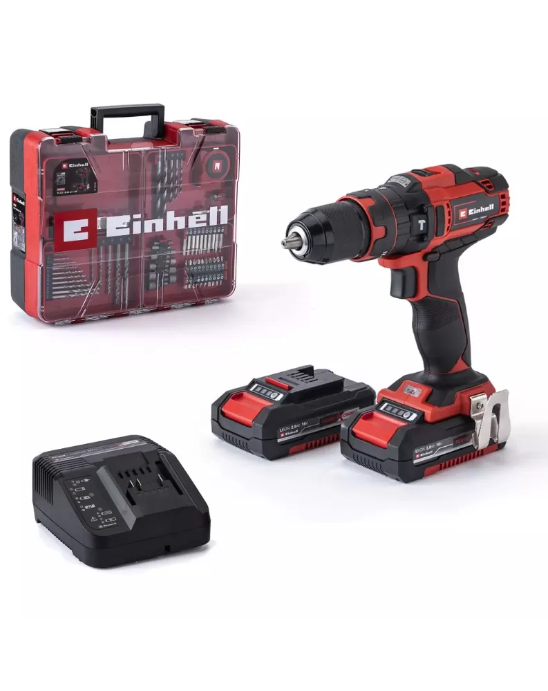 Aku vrtací šroubovák s příklepem TE-CD 18/40 Li-i +64 (2x2,0Ah) je všestranný, zazáří ve třech důležitých disciplínách v domácím a řemeslném sektoru: funkce šroubování, vrtání a vrtání s příklepem jsou spojeny v jednom praktickém přístroji. Jako člen výkonné rodiny Power X-Change lze každou baterii ze systémové řady kombinovat s aku vrtacím šroubovákem s příklepem – a baterie, které jsou součástí dodávky, lze také použít ve všech systémových zařízeních. 2-rychlostní převodovka je vhodná pro výkonné vrtání a šroubování s kroutícím momentem až 40 Nm. Se začleněnou funkcí příklepu lze vrtat i tvrdší materiály, jako jsou cihly, při vyšších rychlostech - samotná funkce vrtání je pro vrtání do dřeva dostačující. Díky nastavení krouticího momentu poskytuje zařízení v případě potřeby také nižší otáčky pro šroubování do měkčích materiálů. Integrované LED osvětlení poskytuje optimální výhled na pracovní plochu i v tmavých prostorách. Akumulátorová vrtačka / šroubovák je vždy připravena k použití díky vysoce kvalitní Li-Ion technologii bez samovybíjení. Součástí dodávky jsou dvě baterie Power X-Change 2,0 Ah a rychlonabíječka a také 64dílná sada příslušenství, dodáváno v praktickém kufříku.