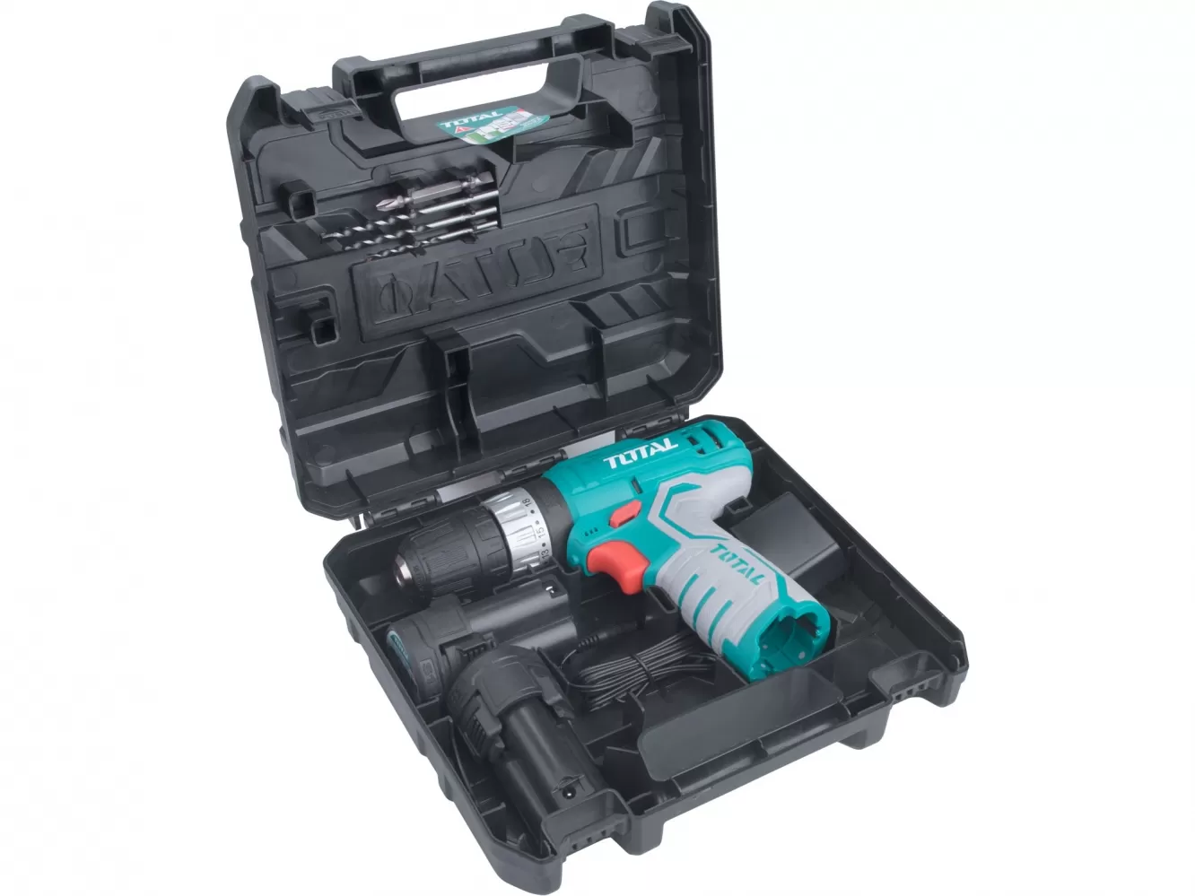 • Vrtací šroubovák je dodáván se 2 kusy baterie, nabíječkou a je zabalen v malém a praktickém kurfu pro snadný přenos.