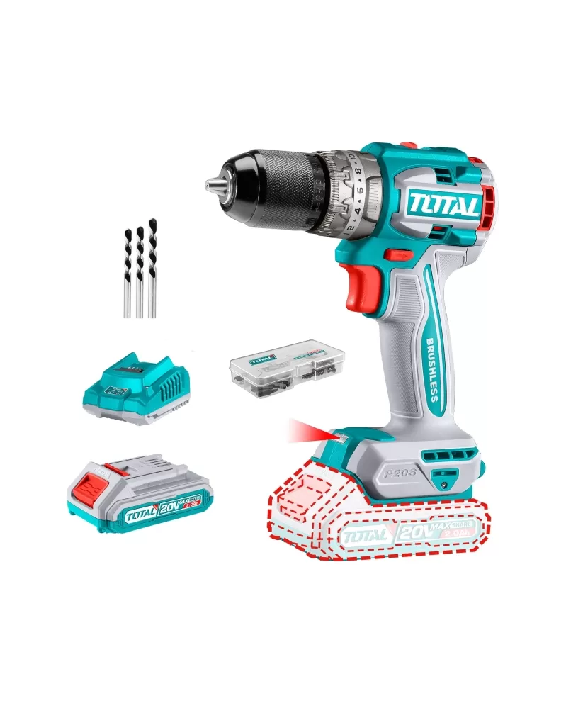 Aku vrtací šroubovák s příklepem 20V 2x2,0Ah Total TIDLI20602E