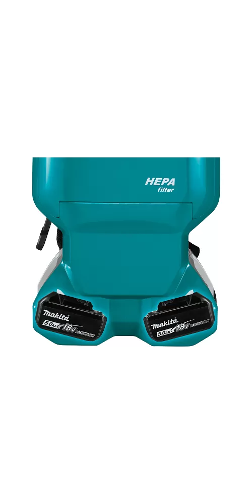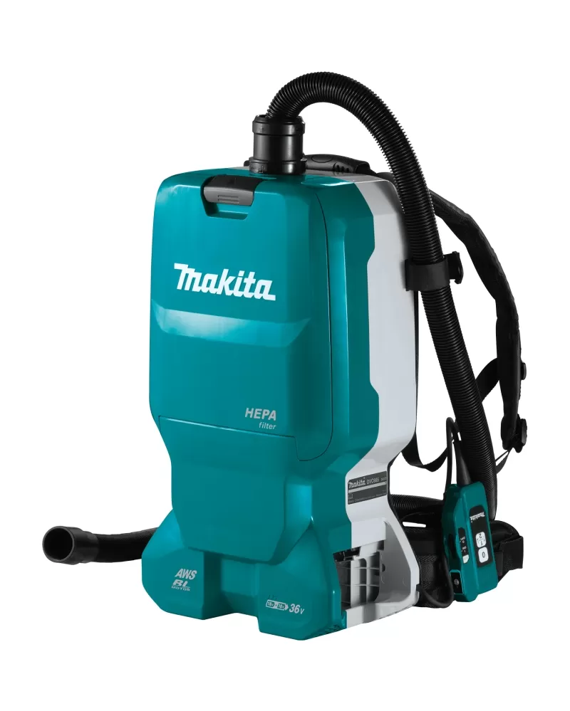 Aku batohový vysávač s AWS 2x18V bez batérie Makita DVC665ZU je ľahký a kompaktný vysávač napájaný dvomi Li-ion 18V batériami.