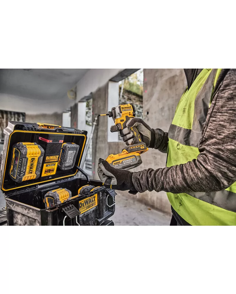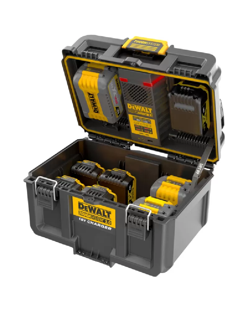 • Box s dvojicí 4 ampérových nabíjecích portů pro nabíjení 18V a 54V akumulátorů DeWALT