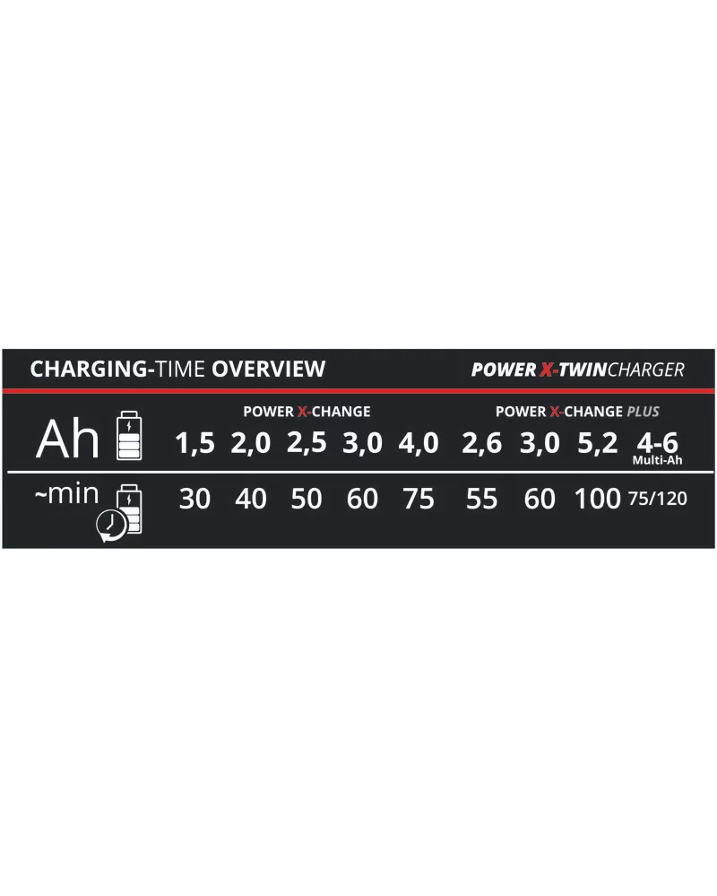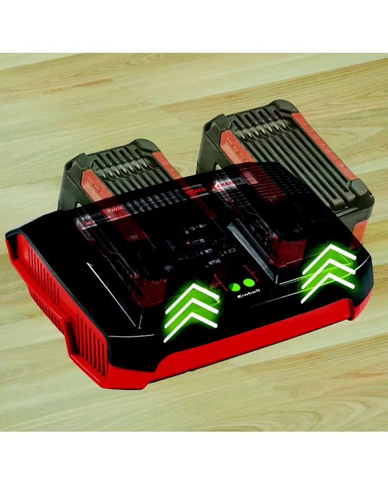 • S nabíječkou Einhell Power X-Twincharger 3 A lze současně nabíjet dvě baterie řady Power X-Change