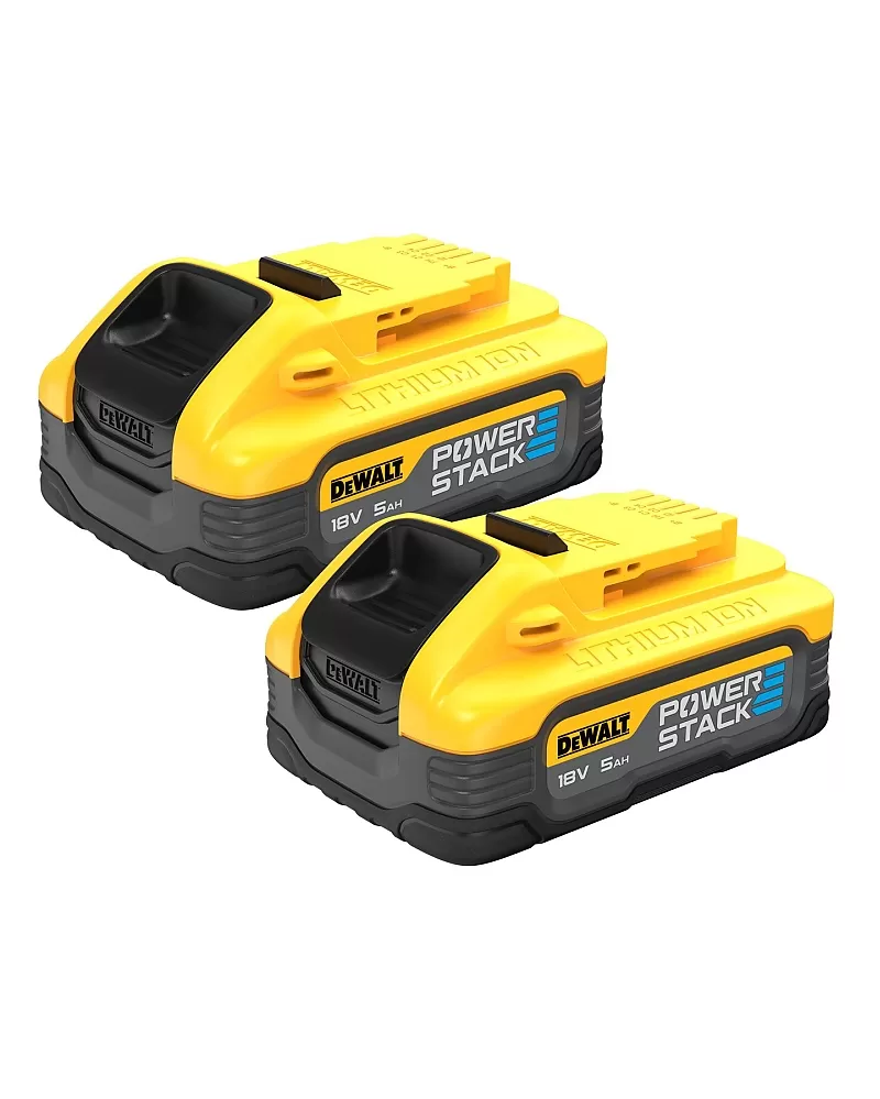 2 kusy originálního akumulátoru 18V 5,0Ah DeWALT DCBP518H2 z nové řady Powerstack - nejvýkonnější, nejkompaktnější a nejlehčí akumulátor