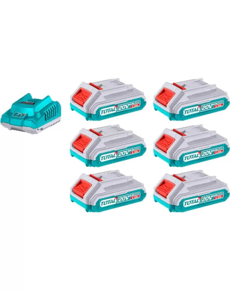 Sada baterií 20V 4x2,0 Ah + nabíječka INDUSTRIAL TOTAL TFBCLI2062 Sada 6ks baterií 20V s nabíječkou Baterie jsou kompatibilní do všech nářadí… Celý popis