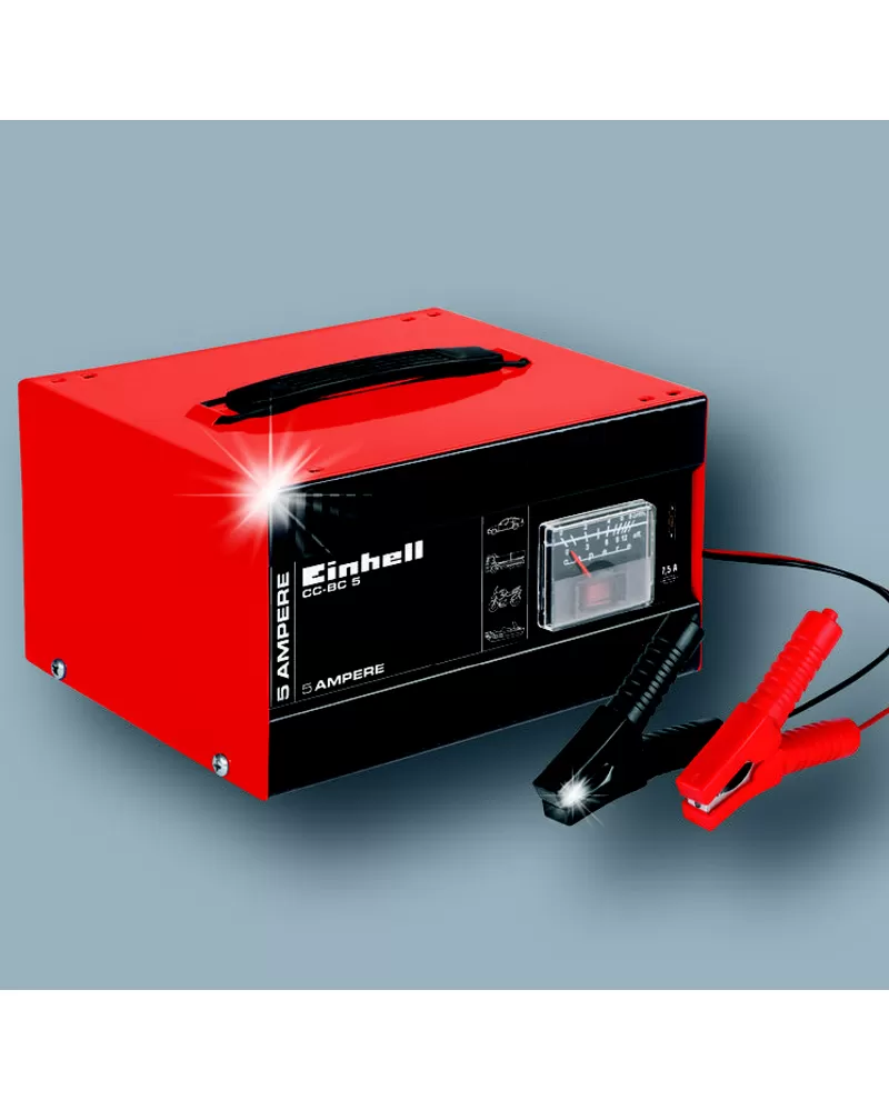 • Nabíječka baterií Einhell CC-BC 5 je praktická 12V nabíječka v robustním krytu z ocelového plechu určená pro flexibilní nabíjení prázdných baterií automobilů a motocyklů