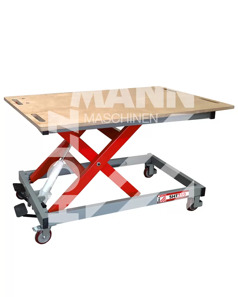 Kompaktní hydraulický nůžkový zvedací stůl Holzamnn SHT310 pro ergonomickou práci v optimální pracovní výšce.