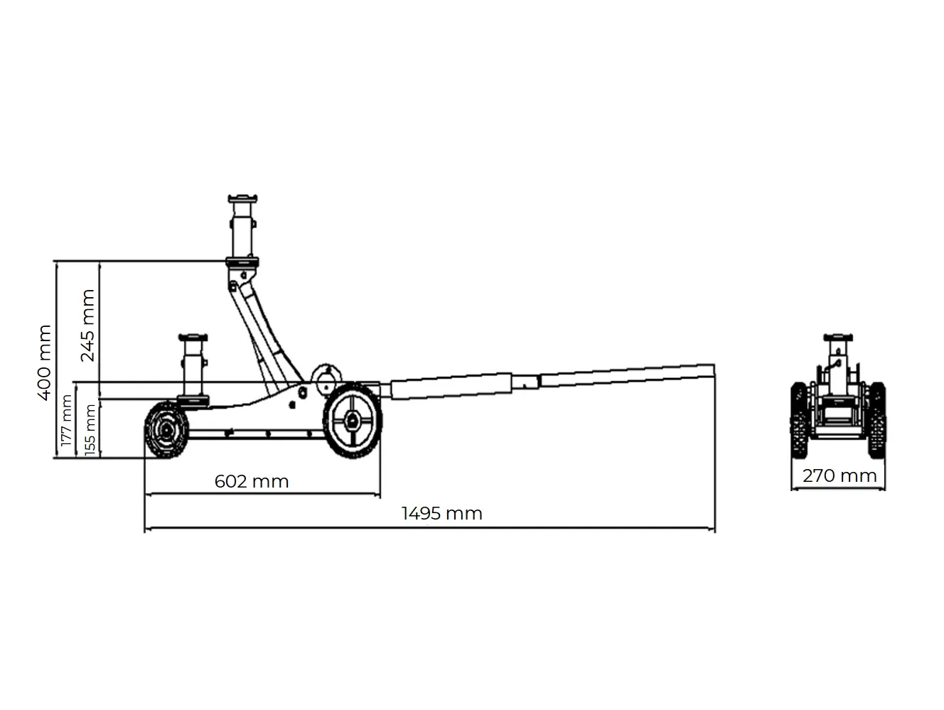 Terénní zvedák HOLZMANN OWH1.5 se zvedací silou až 1,5 tuny a předními a zadními koly Ø150 mm pro lepší ovladatelnost v terénu.