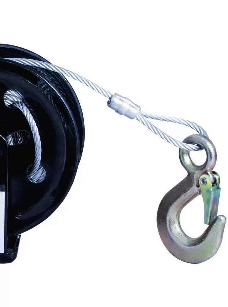 • Konstrukce: ocelový korpus navijáku s otvory (3) pro montáž napevno, 20 m lano se závěsným hákem (bezpečnostní pojistka), ergonomicky tvarovaná ruční klika.