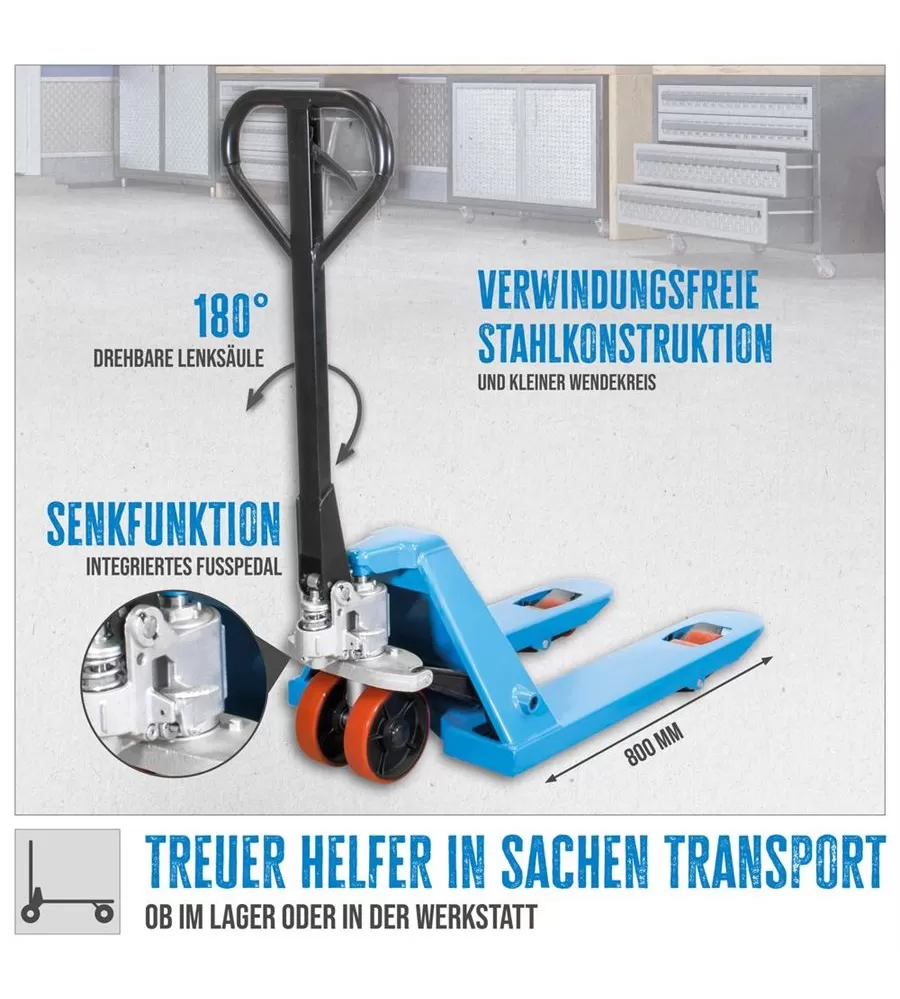 Paletový vozík GHW 2500-80 PU Güde 24326 Nízkozdvižný vidlicový vozík, určený k přemisťování zboží ad. nákladů, naložených na standardních i… Celý popis