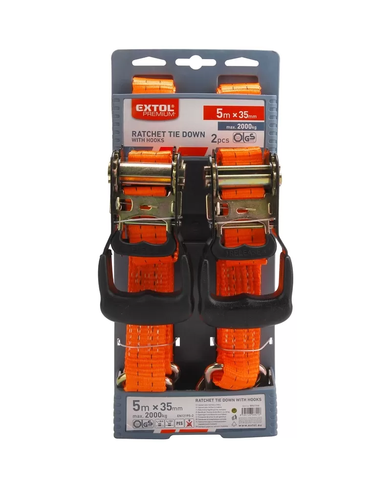 Upínací ráčnový pás s háky 5 m x 35 mm sada 2ks EXTOL PREMIUM 8861146