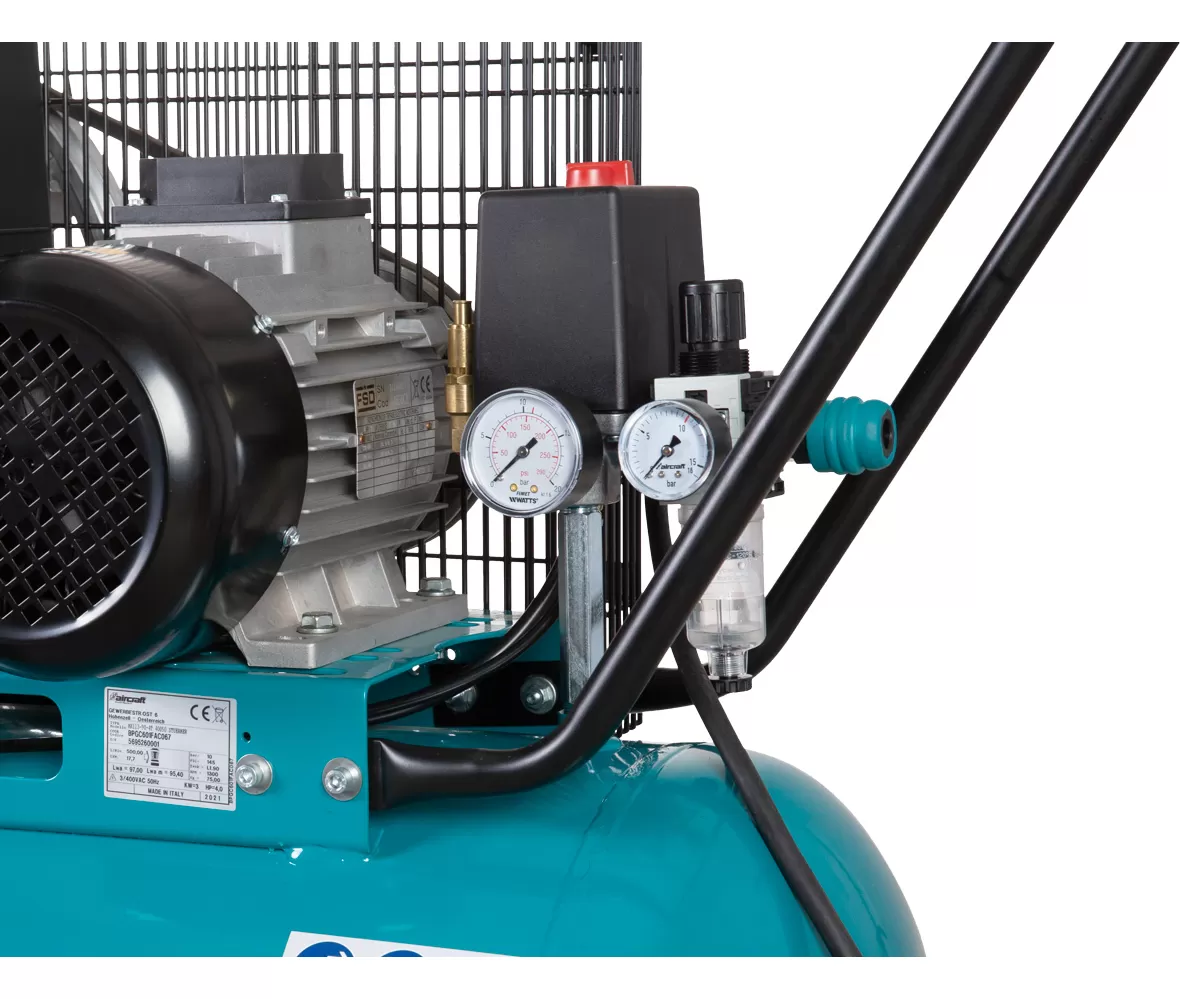 • Tlaková nádoba s pojistným ventilem, manometrem a ventilem pro vypouštění kondenzátu