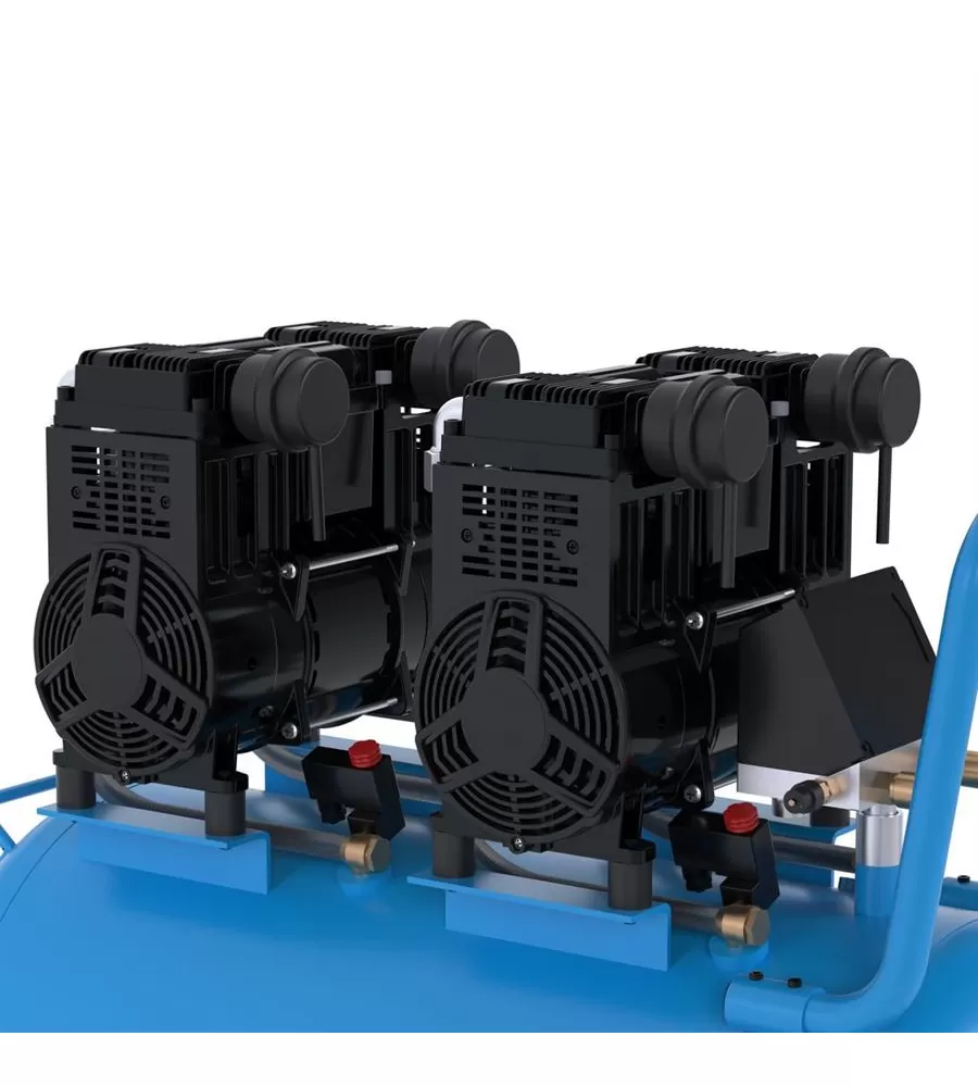 Bezolejový kompresor GÜDE, určený pro provozy a zařízení, vyžadující nehlučný chod strojů. Výkonný čtyřválcový tichý kompresor s velkou 100litrovou nádrží se sacím výkonem 654 l/min a pracovním tlakem 8 barů pokrývá požadavky na vzduch nejběžnějšího pneumatického nářadí. Dvě bezolejové a bezúdržbové dvoupístové jednotky se spouštějí každá s časovým zpožděním prostřednictvím přepínacího relé, aby se zabránilo napěťovým špičkám při spouštění, zejména při nízkých teplotách.