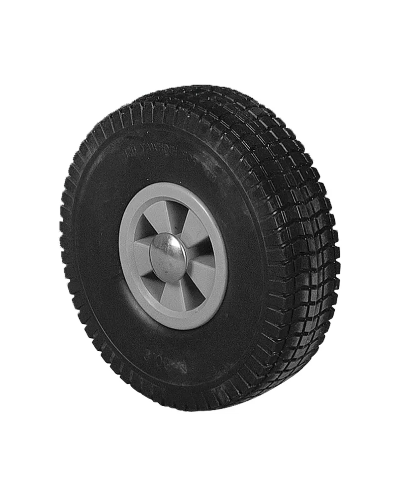• Stabilní řiditelný podvozek s parkovací brzdou ve spojení s velkými koly z PU pěny zabraňující defektu umožňují pohodlnou přepravu bez nutnosti kompresor nadzvedávat