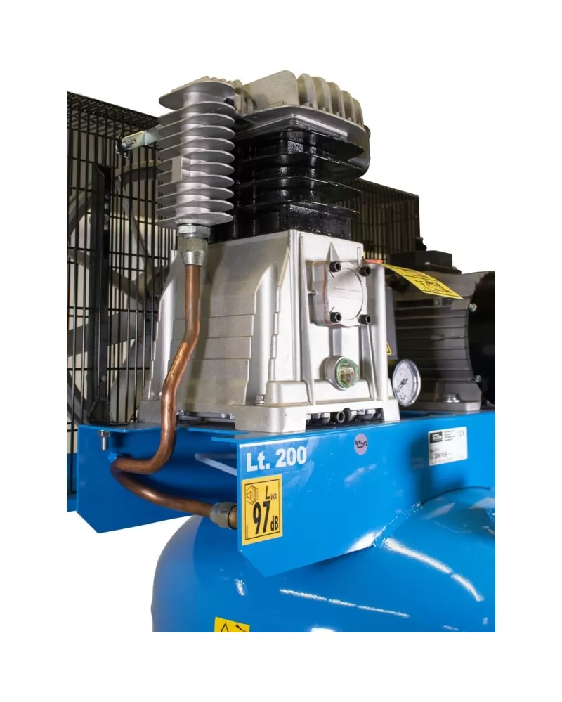 • Tlaková nádoba: 200 l, ventil pro vypouštění kondenzátu, široce otevřené opěrné nohy (3) s otvory pro montáž napevno.