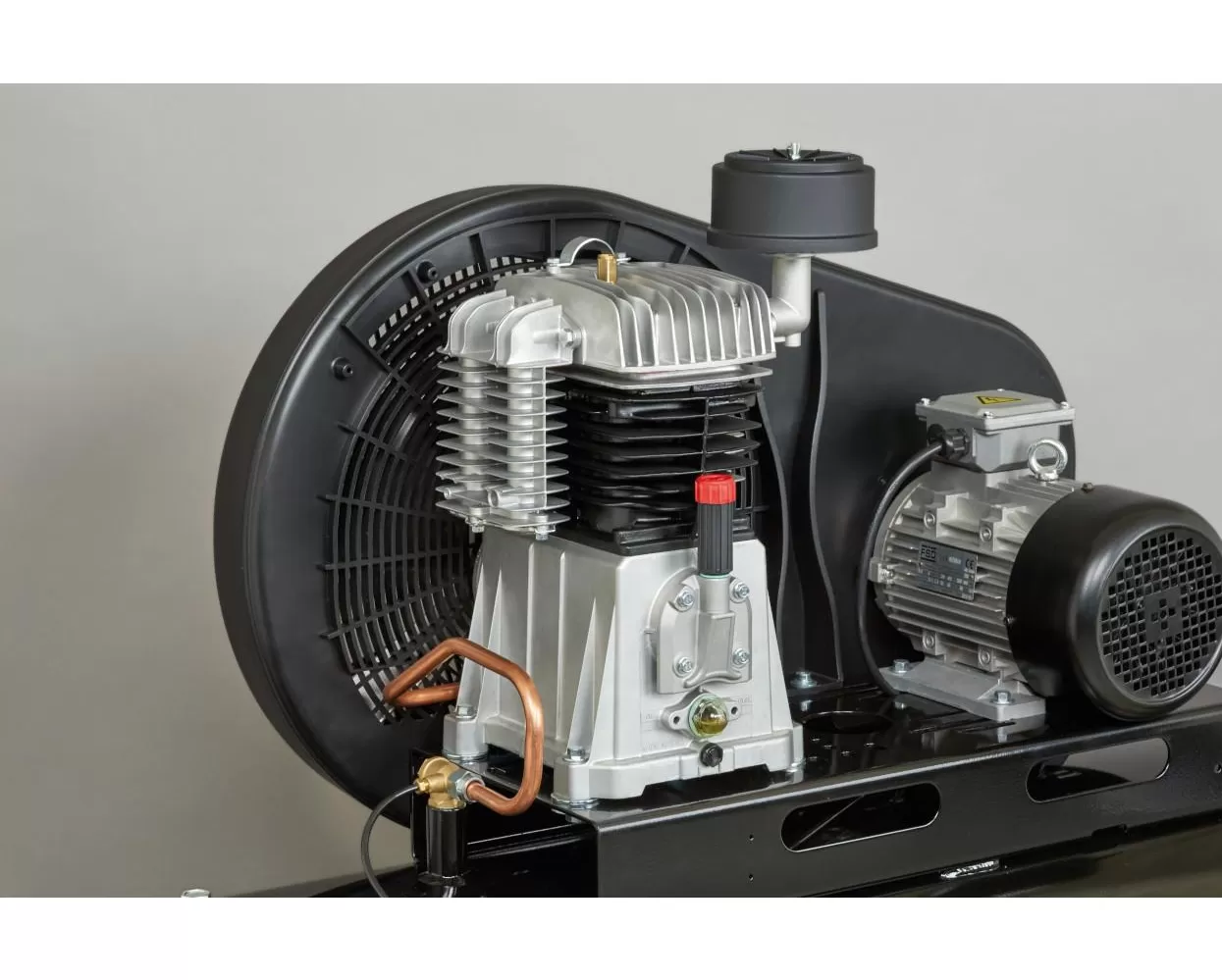• Dvouválcový, dvoustupňový, řemenový, olejový kompresor vhodný pro vysoké zatížení.