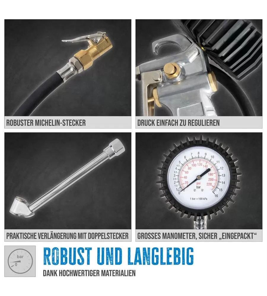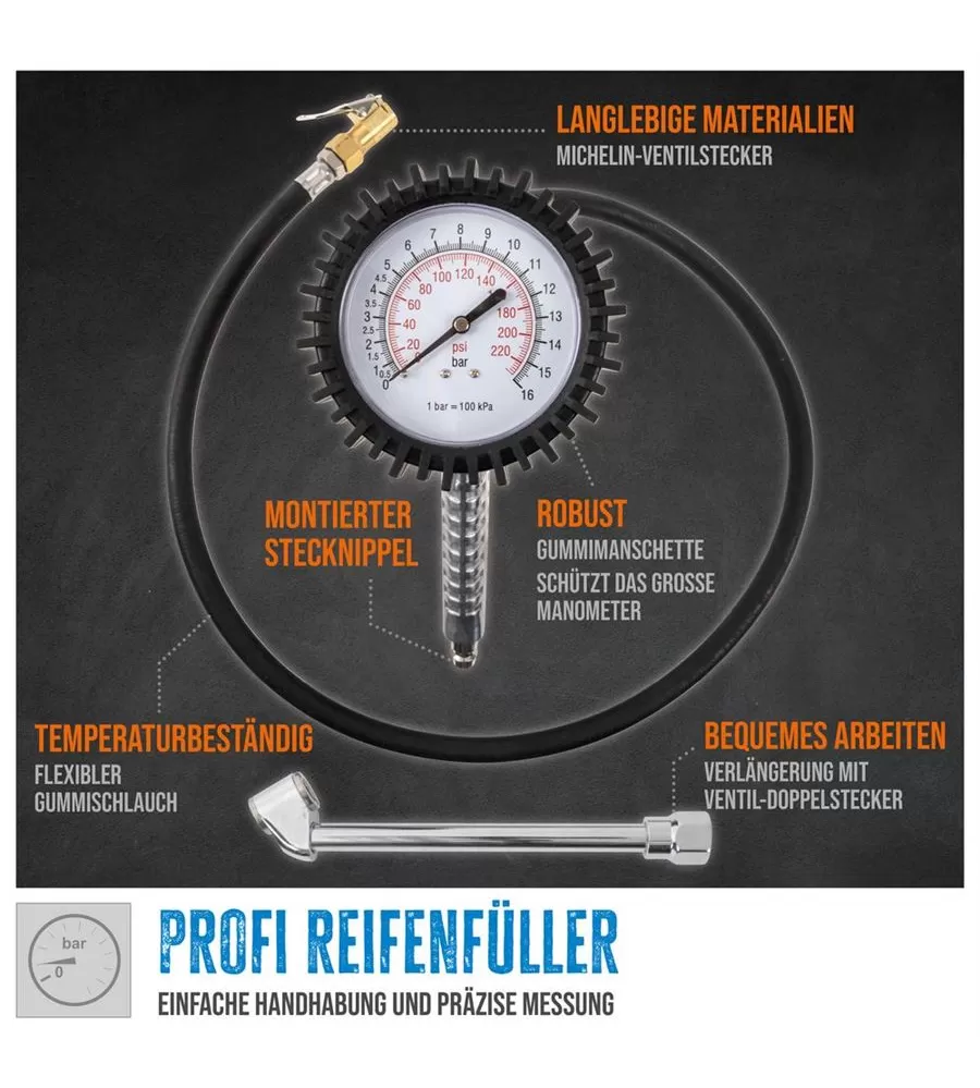 Hustilka pneumatik profi Güde 2756 - Profesionální huštění pneumatik - s regulačním ventilem - Extra velký manometr - Gumová objímka chrání manometr… Celý popis