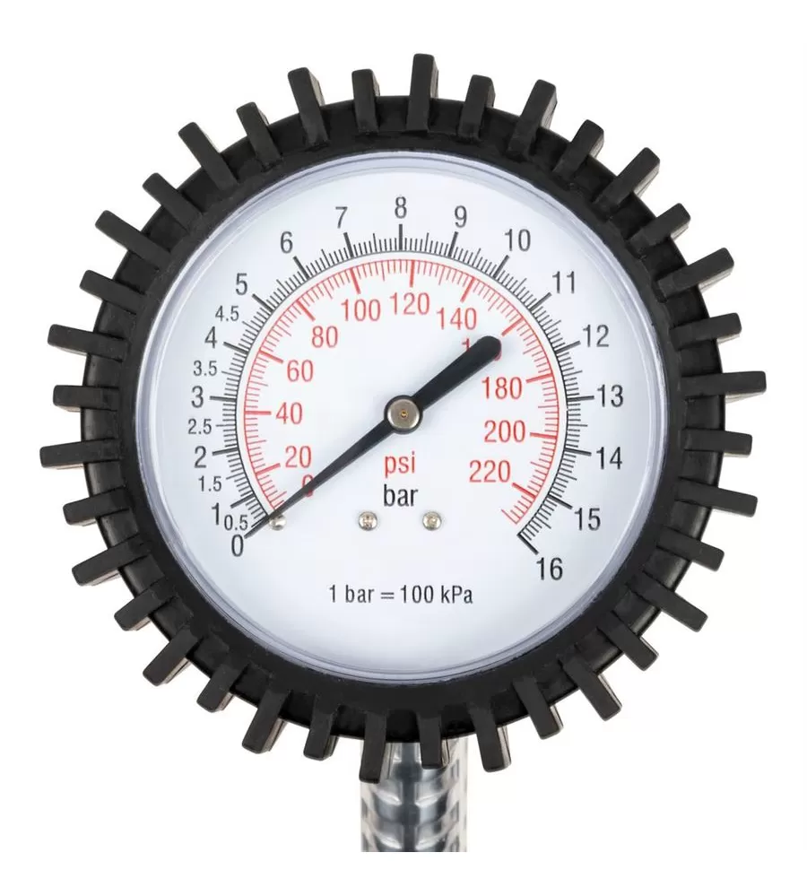 - Gumová objímka chrání manometr