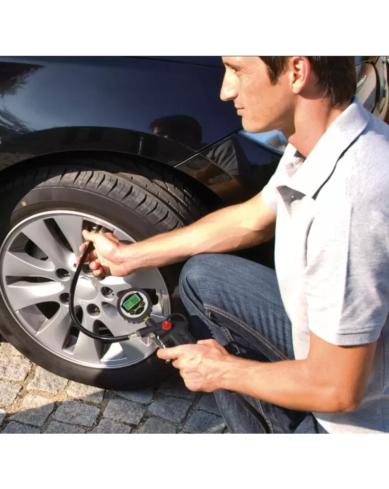 • Digitální měřič tlaku v pneumatikách od společnosti Einhell umožňuje snadné a přesné huštění pneumatik