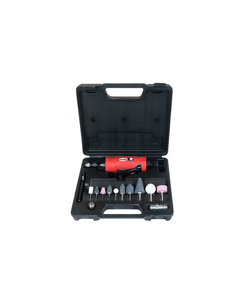 • Pneumatická stopková bruska přímá PROMA PPB-200K je výkonný nástroj pro broušení a leštění, který využívá pneumatickou sílu pro pohyb brusného kotouče.