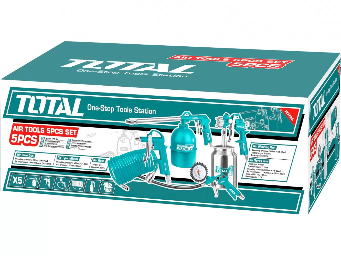 Sada kompresora pneumatík 5 ks Spolu TATK051 Hlavné výhody Dĺžka vzduchovej špirálovej hadice 5m, priemer 8mm Fukacia pištoľ, striekacia… Celý popis