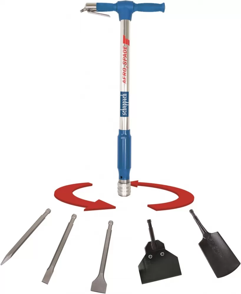 Pneumatický multifunkční nástroj 5v1 Scheppach Aero 2 Spade S multifunkčním pneumatickým nástrojem Aero2 Spade od Scheppachu se stane mnoho těžkých úkolů výrazně snazšími Kopání a rytí ve ztvrdlé zemině, vykopávání starých stromků a keřů,...