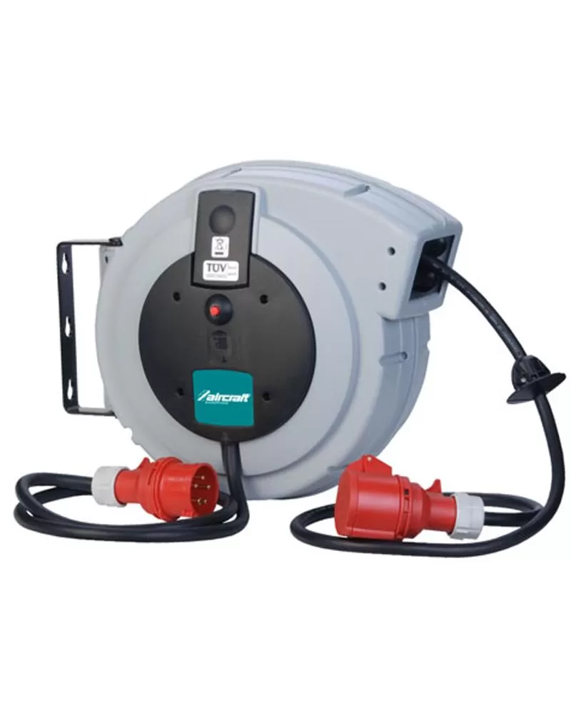 Automatický navíjecí buben s kabelem pro dílenské i průmyslové využití. 400 V model s 5 × 16 A CEE zástrčkou a zásuvkou.