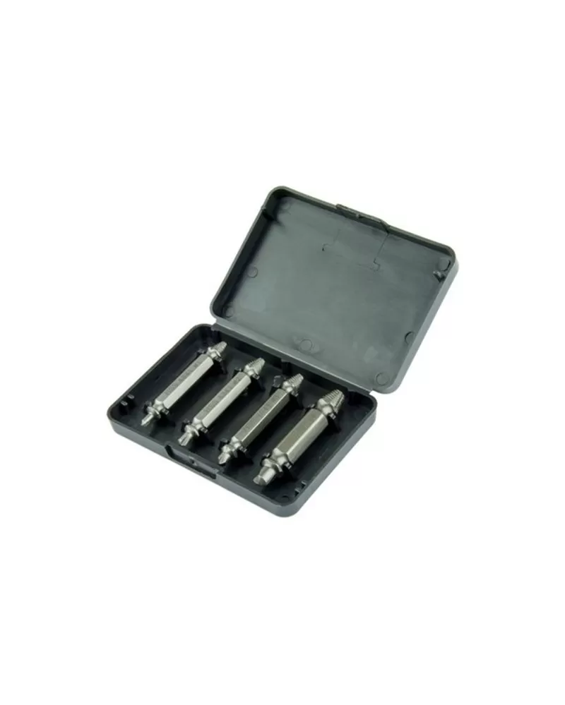 4dílná sada vytahováků poškozených šroubů OREN 998900-4 Vrták a vytahovák v jednom nástroji. Použití: snadné vyjmutí zalomených nebo zrezivělých… Celý popis