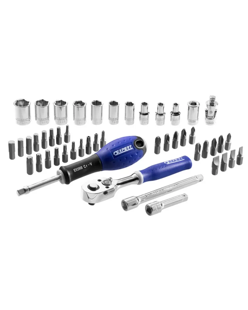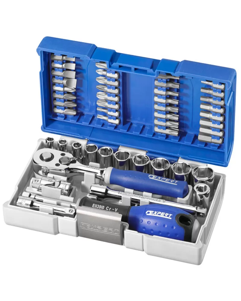 48dílná sada 1/4" hlavic v kompaktním boxu Kufřík s kovovými přezkami a panty, umožňující uložení v zásuvce pojízdné montážní skříně. … Celý popis