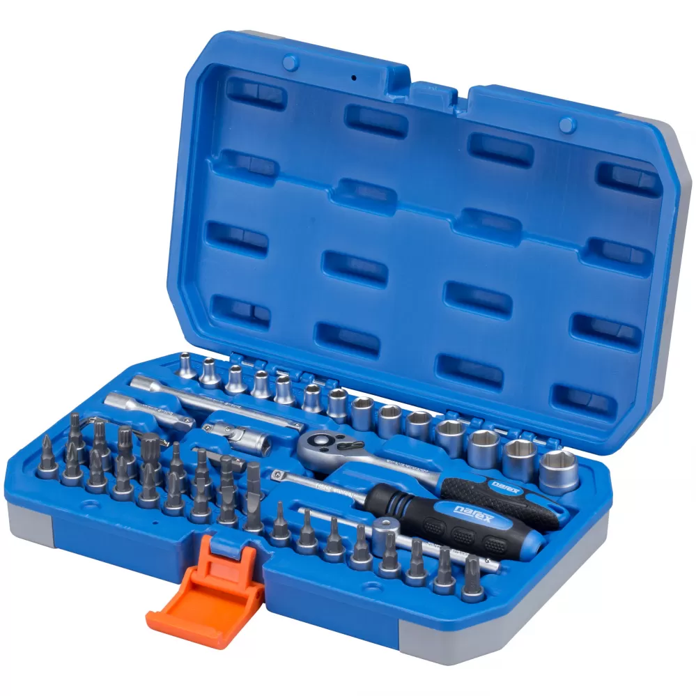 49dílná sada hlavic SH 49-14 Narex 65404189 pro ruční průmyslové použití kvalitní kovaná chrom-vanadová ocel Povrchová úprava matný chrom ráčna… Celý popis