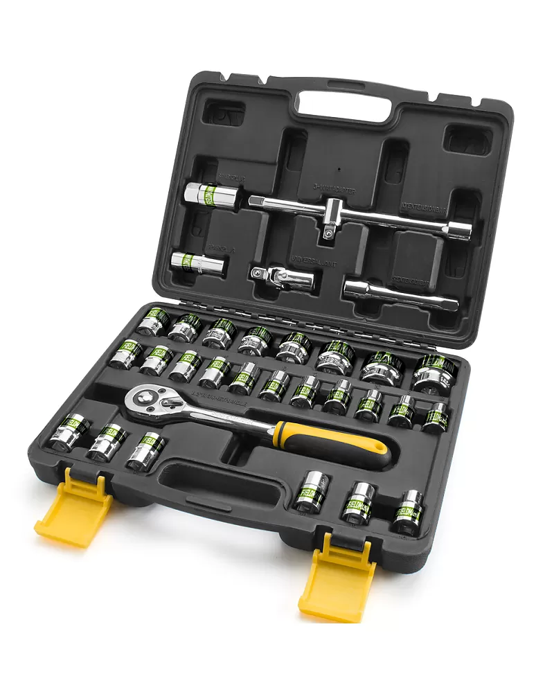 • 32-dielna súprava Gola s veľkou 1/2-palcovou račňou a objímkami vrátane dvoch typov objímok zapaľovacích sviečok