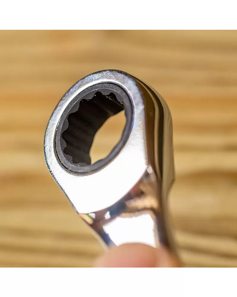 • Ráčna v očku umožňuje práci bez nutnosti sejmutí klíče z matice