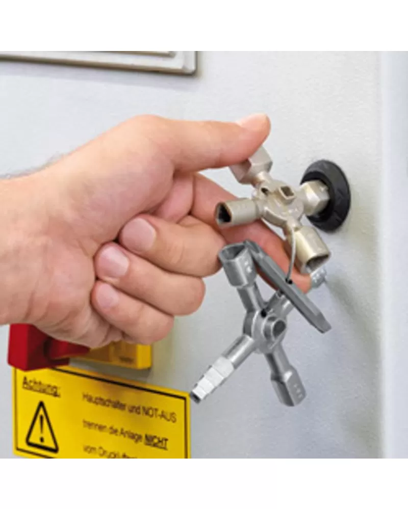 Klíč na rozvodné skříně TwinKey Knipex 00 11 01 Multifunkční klíč pro ovládání uzávěrů z oblasti techniky budov (topení a sanitární zařízení,… Celý popis