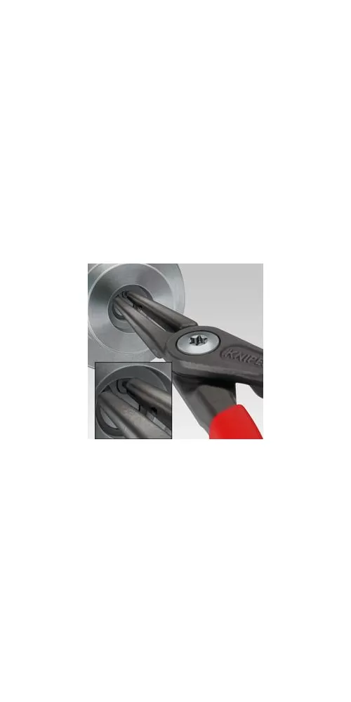 Precizní kleště na pojistné vnitřní kroužky v otvorech Knipex 48 21 J31 s nasazenými hroty pro bezpečnou práci vysoce zatížitelné při nepřetržitém… Celý popis