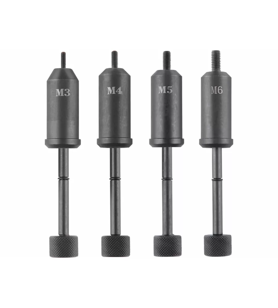 • Všechny nýtovací trny včetně čelistí pro nýtování trhacími nýty vyrobeny z CrMoV oceli a spolu se všemi nýtovacími koncovkami (pro trhací nýty) jsou součástí balení