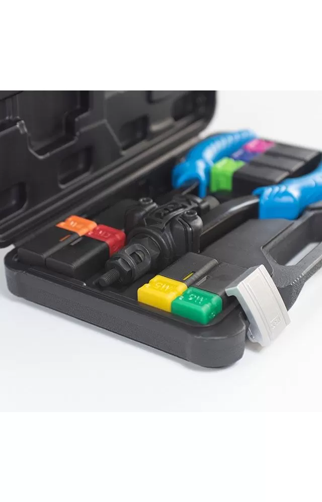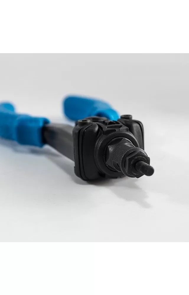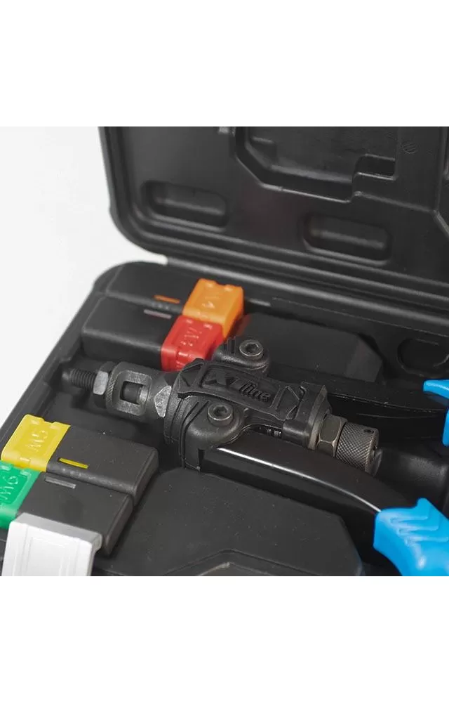 • Komfort při práci zajišťuje odolné lehké tělo z hliníkové slitiny, tvrzené Cr-Mo čelisti, koncovky pro maticové nýty M3, M4, M5, M6, M8, M10, M12 a klíč pro výměnu koncovek.