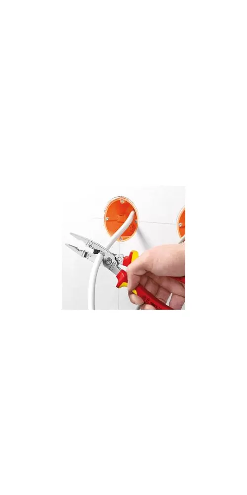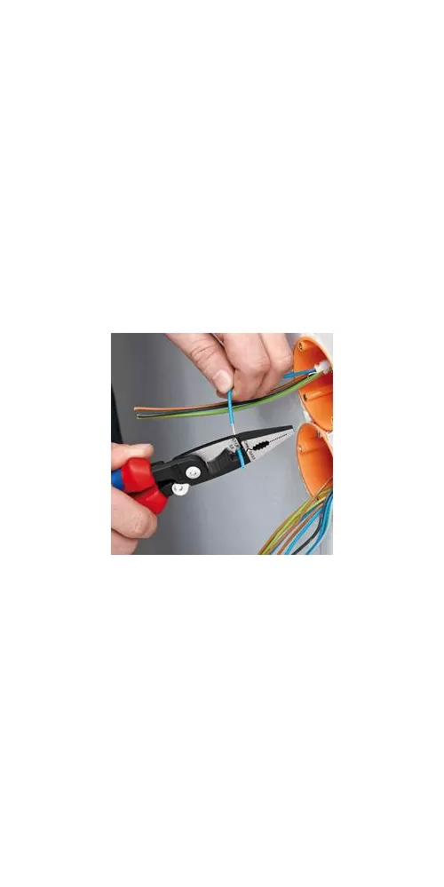 • multifunkční kleště pro elektroinstalace; na uchopování plochého i kulatého materiálu, ohýbání, odstranění otřepu, štípání kabelů, odizolování a krimpování koncových dutinek