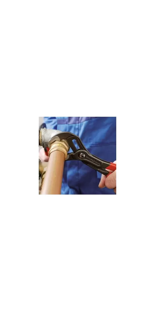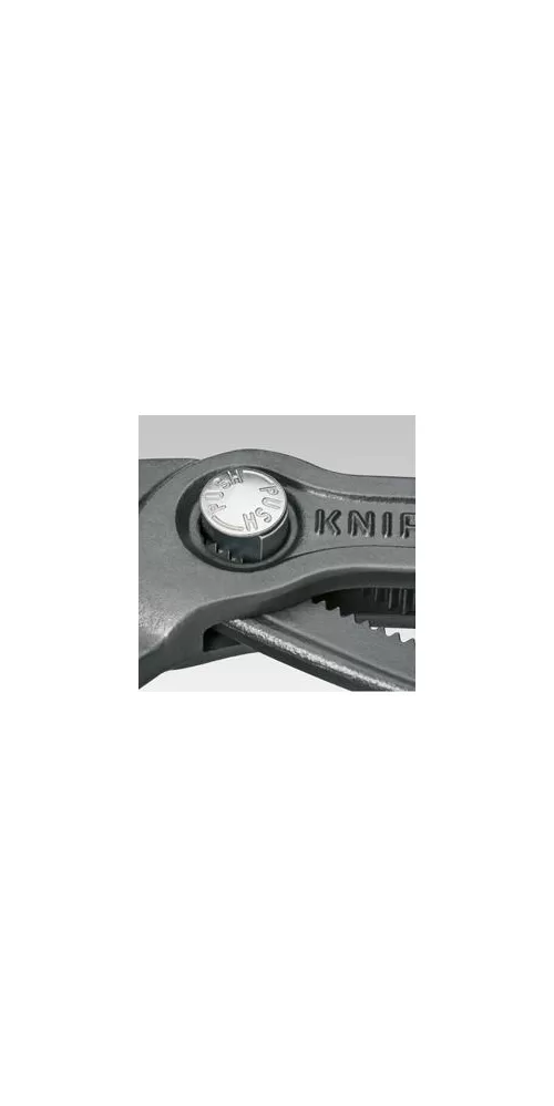 • KNIPEX Cobra® – Hightech instalatérské kleště. Už žádné zbytečné zkoušení správné velikosti rozevření. Místo toho: na součást položit horní polovinu čelistí, stisknout knoflík a přisunout spodní čelist – geniálně jednoduché