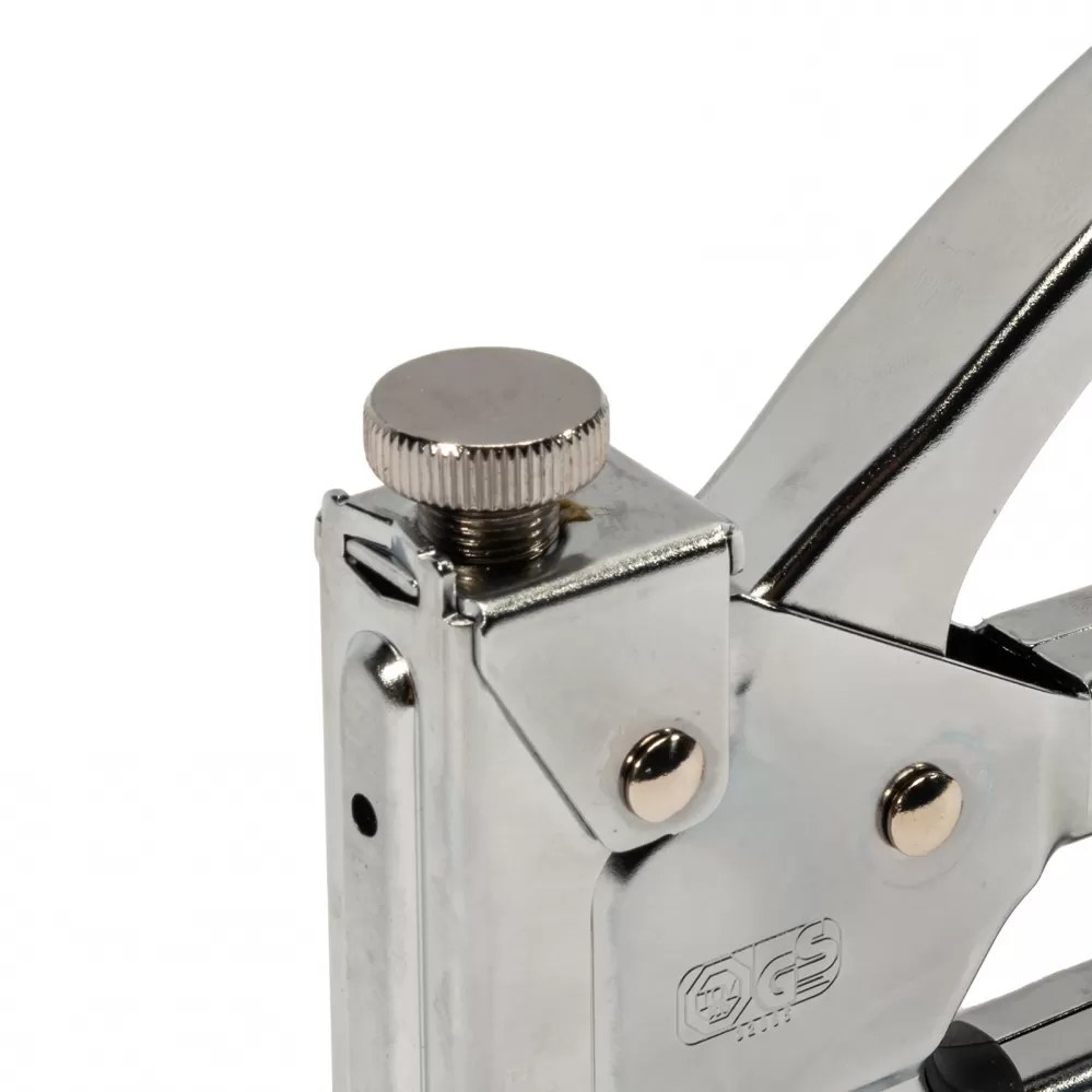 Celokovová profesionální sponkovačka umožňuje nastavitelný doraz a obsahuje velký zásobník na sponky. Do sponkovačky lze použít výšku sponky 6,8,10,12 a 14 mm.