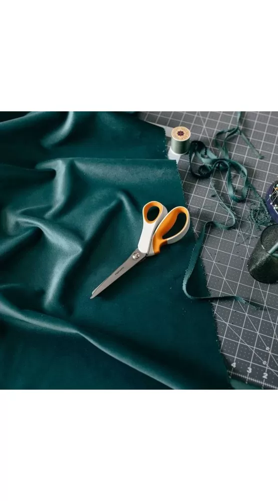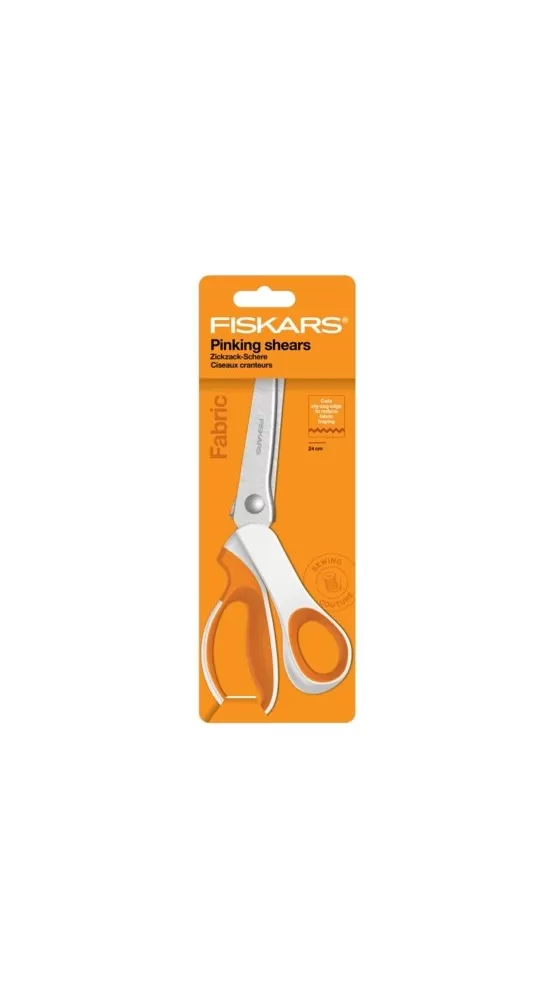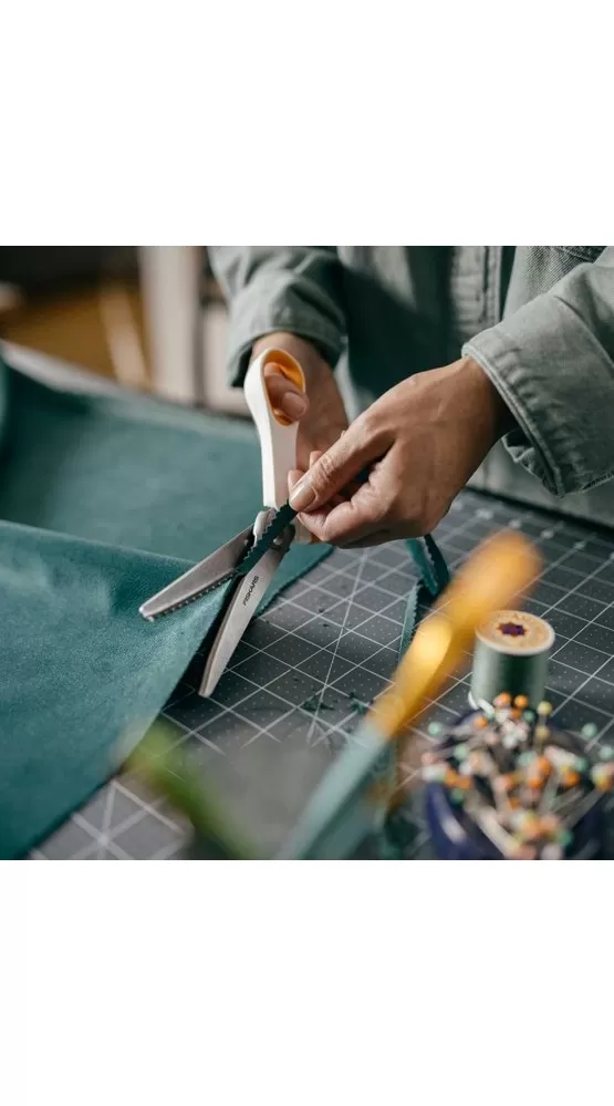 • Nůžky entlovací Fiskars Softgrip™ stříhají zoubkované okraje, které snižují třepení látky a zabraňují jejímu párání, takže projekty zůstávají čistě zastřižené a úhledné