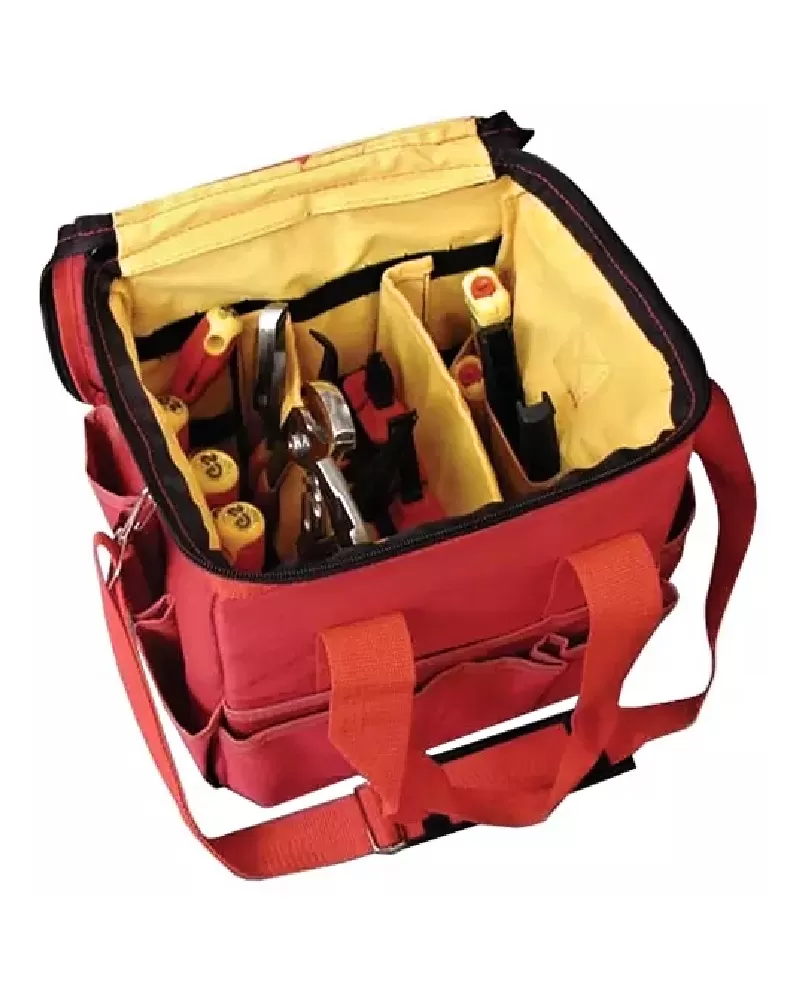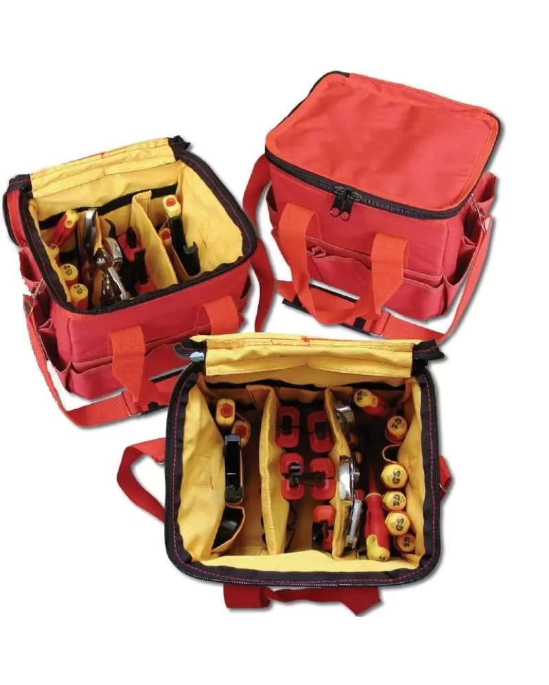 • Veškeré nářadí v brašně má dvousložkovou rukojeť se speciální úpravou plastů, zabraňující prokluzování nářadí v ruce a zároveň slouží jako účinná izolace proti zásahu elektrickým proudem (pro práci pod napětím do 1000V)